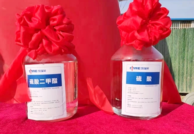 1月23日至29日,歷時7天,由公司負責設計的山東凱瑞英材料科技有限公司羥脲磺胺類醫(yī)藥中間體產(chǎn)業(yè)鏈項目硫酸二甲酯裝置及公輔配套設施試車一次開車成功,打通全流程,產(chǎn)出合格產(chǎn)品,投產(chǎn)后產(chǎn)出主產(chǎn)品硫酸二甲酯產(chǎn)品指標優(yōu)于國標一等品,副產(chǎn)品98%硫酸。