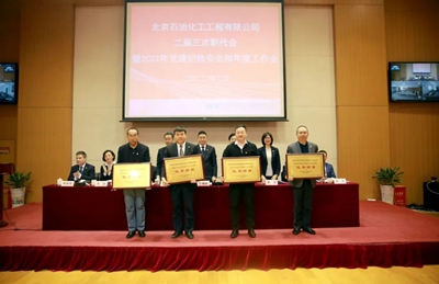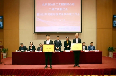 2月14日,北京石油化工工程有限公司召開二屆三次職代會暨2022年黨建紀檢安全和年度工作會。大會學習貫徹了集團公司一屆三次職代會暨2022年黨建紀檢和年度工作會會議精神,全面總結了公司2021年各項工作,分析了公司當前所面臨的發展形勢,明確了2022年工作的總體思路、主要目標和重點任務。公司領導班子成員、中層干部、職工代表等170余人參加了會議,西安分公司、榆神乙醇項目、內蒙古BDO項目等設視頻分會場。