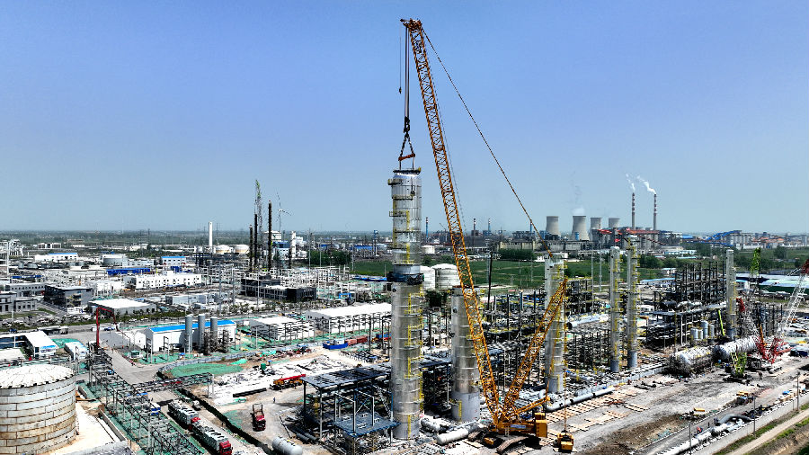 乙醇精制塔上塔的順利封頂,吹響了大件吊裝沖鋒的號(hào)角,向4月底大件吊裝全面收官的目標(biāo)邁出堅(jiān)實(shí)的一步。(通訊員/黃耀輝 攝/王超)