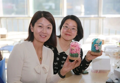 為增強慶祝活動的趣味性、挑戰性、協作性,組織開展手工制作“永生花”體驗活動。活動中,工作人員提前將材料進行分類準備好,并詳細講解“永生花”的制作流程和技巧。大家邊學邊交流經驗,以塑刀為針,以膠水為線,紛紛動起手來,傾力展示自己豐富的想象力和創造力,將工作中的細心、專心、耐心投入到“永生花”的制作上。經過個把小時,女職工們制作出了一朵朵精美的“永生花”,看著自己親手制作的作品,大家臉上洋溢著滿滿的成就感和幸福感。火熱的氛圍,也將此次“三八”節活動推向了高潮。