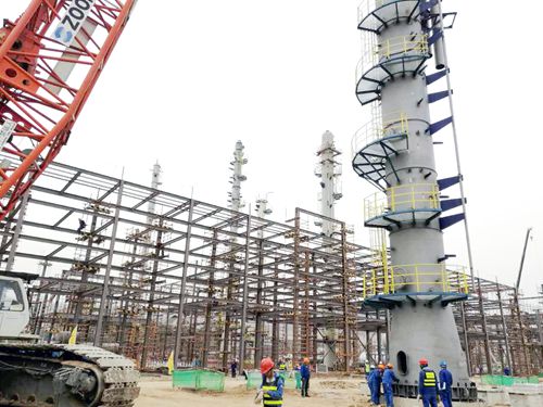 據悉,C-311全稱堿洗/水洗塔,高62.91m,重104.5噸。該設備為工藝設備中較為核心的設備之一,在整體生產過程主要起到酸性氣體脫除功能。ACO項目自2016年5月12日開工以來,克服了場地沉降、轉化器訂貨決策、E-102訂貨決策、原料變更決策(影響汽油加氫單元設計進程)、環評變更決策(增加脫硫系統)等因素,同時,較其他工藝裝置晚開工3-6個月,造成一定程度的設計、采購滯后。面對困難,ACO項目組迎難而上,于2016年12月底前實現了土建整體糾偏的總體控制目標,為2017年進入安裝年創造較好條件。