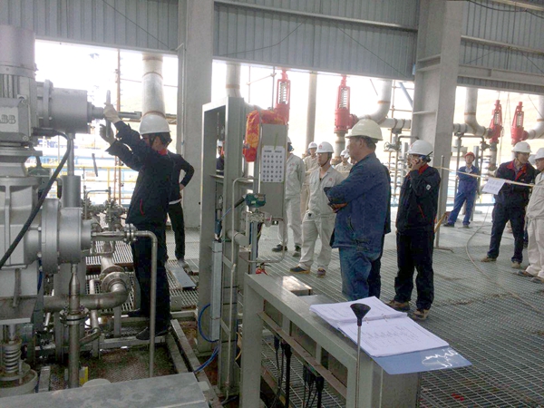 為順利完成兩臺(tái)壓縮機(jī)負(fù)荷試車,項(xiàng)目組抽調(diào)技術(shù)骨干,配合業(yè)主對(duì)界區(qū)介質(zhì)(中壓蒸汽、氮?dú)狻x表風(fēng)、循環(huán)水等)運(yùn)行參數(shù)、提前啟動(dòng)汽輪機(jī)暖機(jī)、防喘振系統(tǒng)調(diào)試及模擬測(cè)試、一二三級(jí)系統(tǒng)管支架、儀表運(yùn)行及參數(shù)等環(huán)節(jié)逐一進(jìn)行了核查。在完成機(jī)組、系統(tǒng)、安全等相應(yīng)手續(xù)簽字后,下午16時(shí)35分,丙烯制冷壓縮機(jī)組開(kāi)始負(fù)荷試車,經(jīng)過(guò)3個(gè)小時(shí)的平穩(wěn)運(yùn)行后,中控顯示系統(tǒng)溫度、壓力、機(jī)組振動(dòng)值均在正常運(yùn)行范圍內(nèi)。隨后,試車團(tuán)隊(duì)又開(kāi)始乙烯制冷壓縮機(jī)機(jī)組的負(fù)荷試車。晚上22時(shí)10分,該設(shè)備運(yùn)行平穩(wěn),各項(xiàng)參數(shù)運(yùn)行數(shù)據(jù)正常,試車一次成功。至此,ACO裝置同日完成了兩臺(tái)壓縮機(jī)試車任務(wù)。