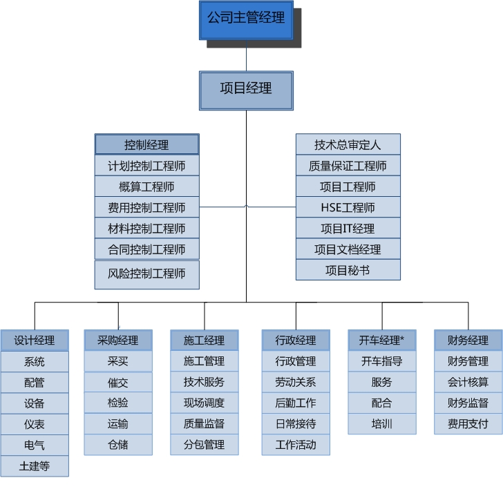 我公司擁有完善的項目管理標(biāo)準(zhǔn)體系、先進的項目管理軟件和豐富經(jīng)驗的項目管理人員,在項目管理理念、系統(tǒng)、模式和工具上完成了與國際接軌。在項目執(zhí)行過程中,建立了在項目經(jīng)理領(lǐng)導(dǎo)下,從項目設(shè)計、采購到施工管理的 EPC 、 EPCM 和 PMC 等全方位用戶服務(wù)體系,為國內(nèi)外用戶提供優(yōu)質(zhì)的工程服務(wù)。